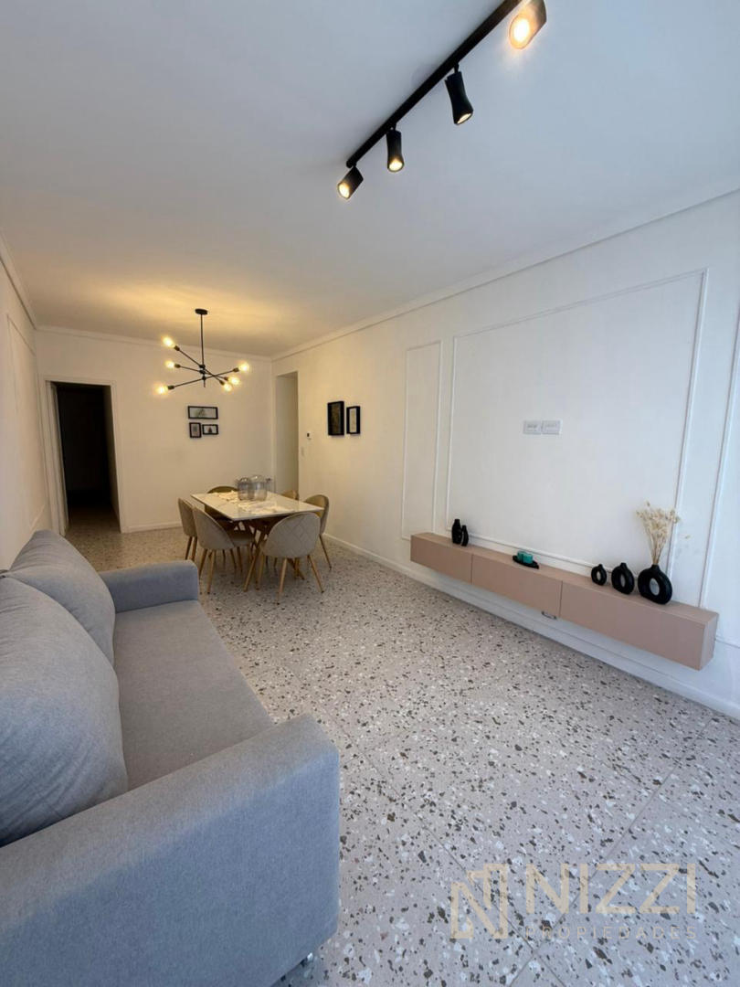 Amplio living comedor con balcón saliente a la calle y vista lateral a la plaza y al mar