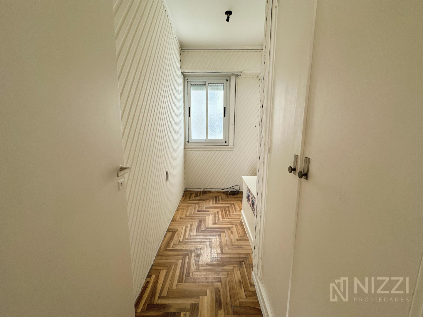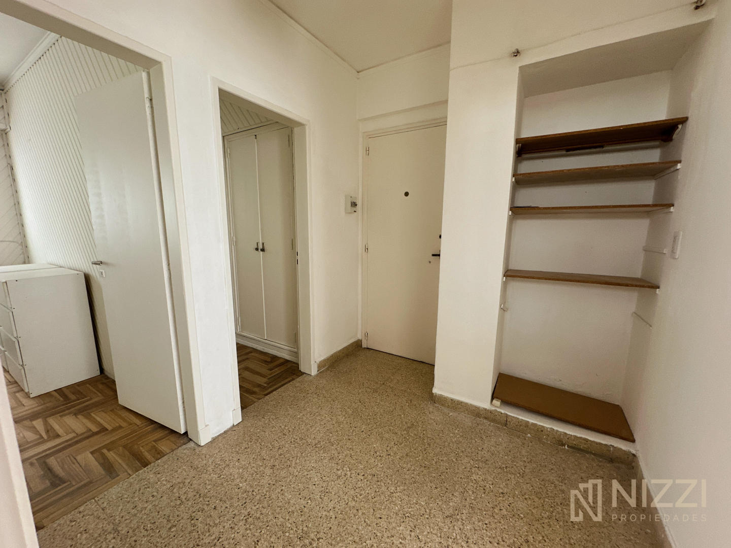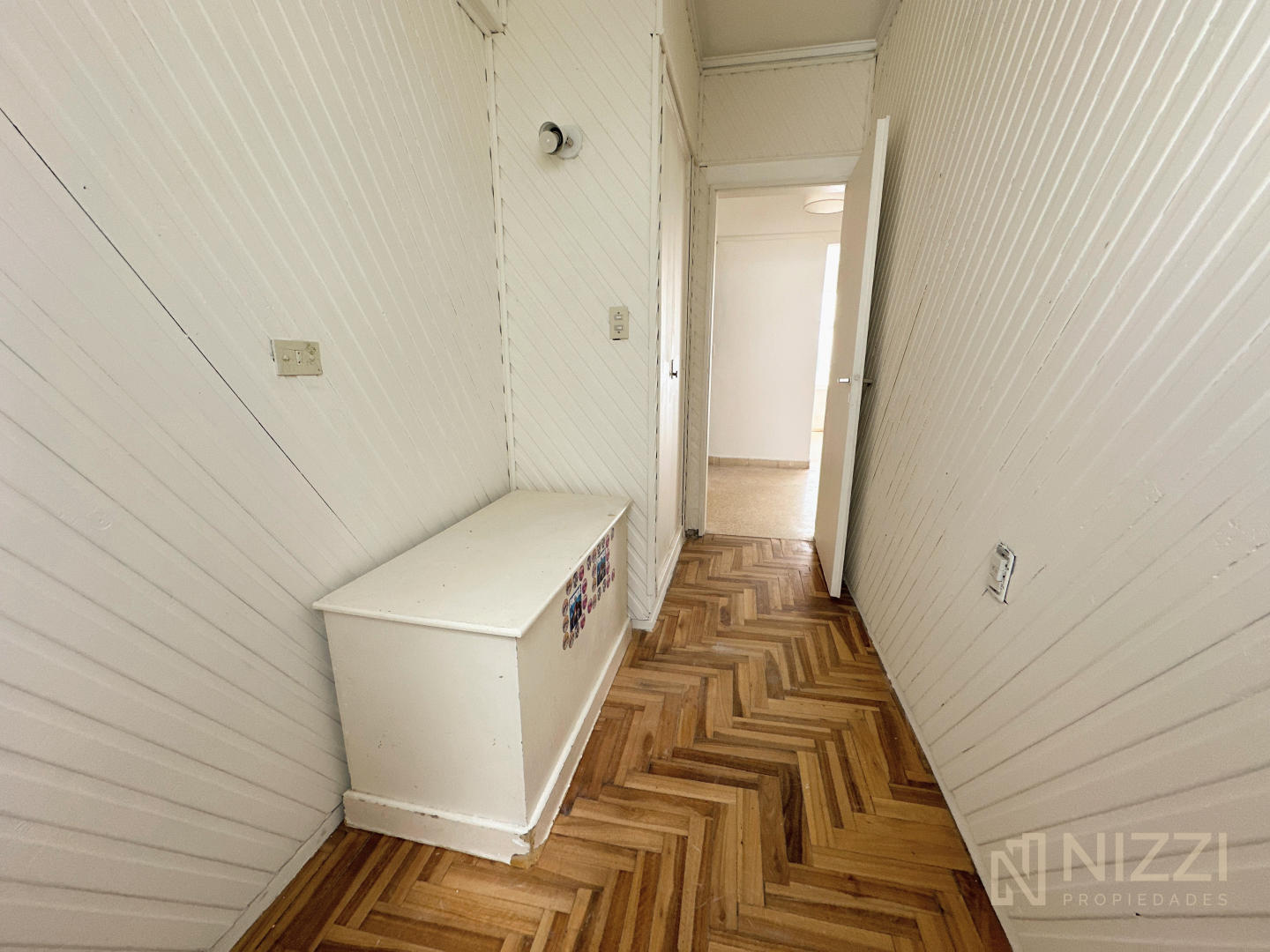 El mismo cuenta con un palier recibidor, dormitorio principal y segundo dormitorio pequeño, ambos con pisos de parquet y placard, living comedor con balcón incorporado y cocina semi integrada con espacio de lavadero y baño completo con ventilación natural.