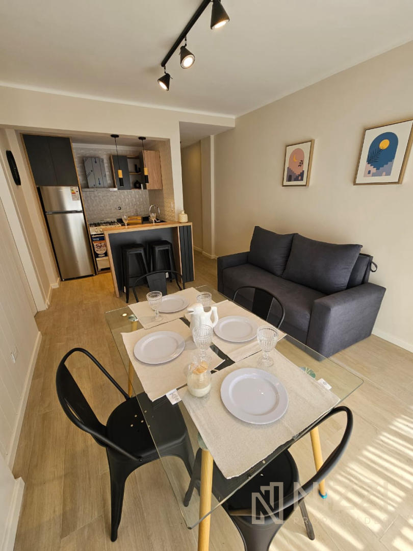 Cuenta con cocina integrada con barra desayunadora, con heladera con freezer, termotanque eléctrico, cocina y extractor a estrenar