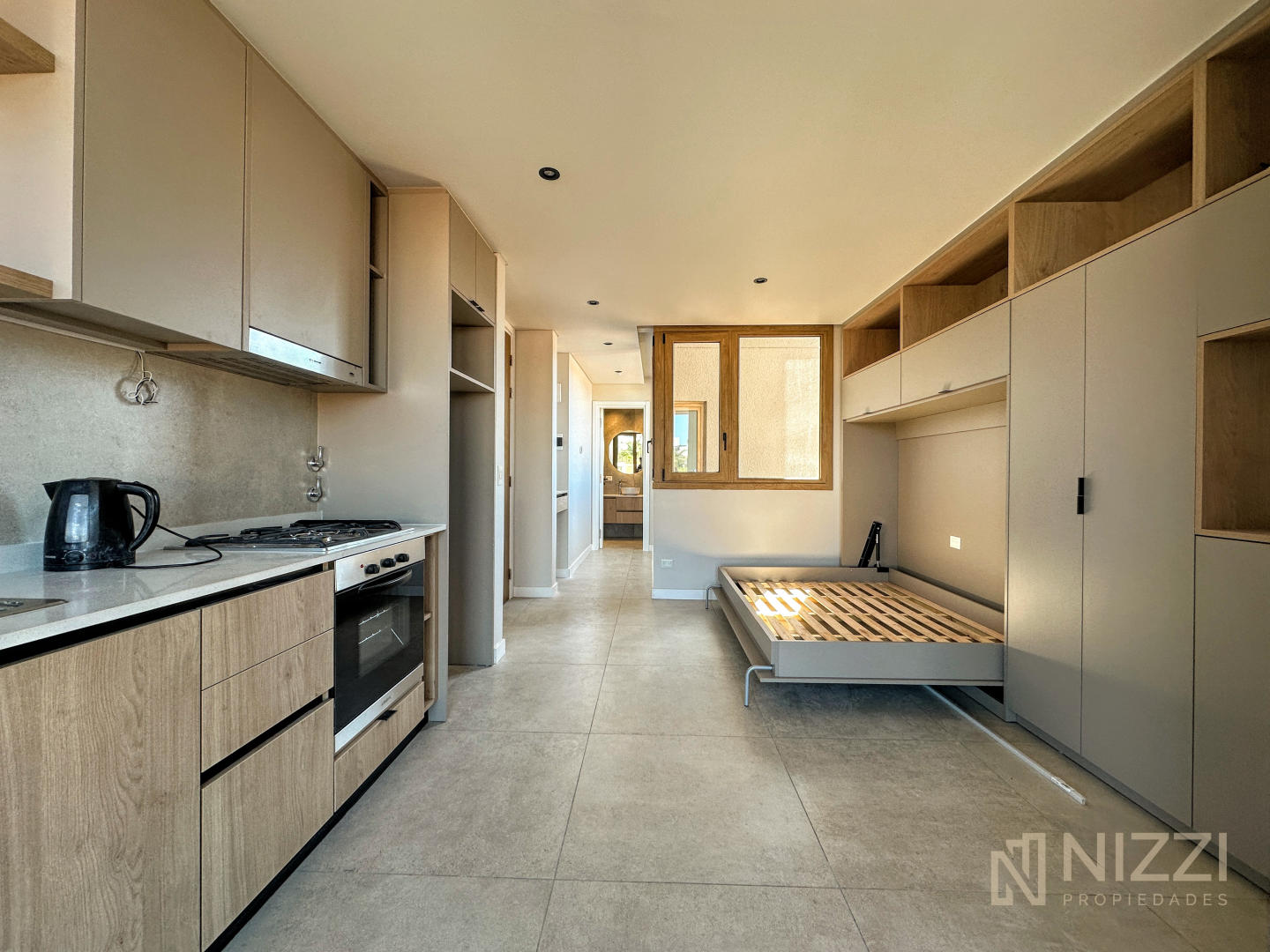 Amplio ambiente a al calle con cocina incorporada con muebles a medida, gran espacio de guardado con cama embutida